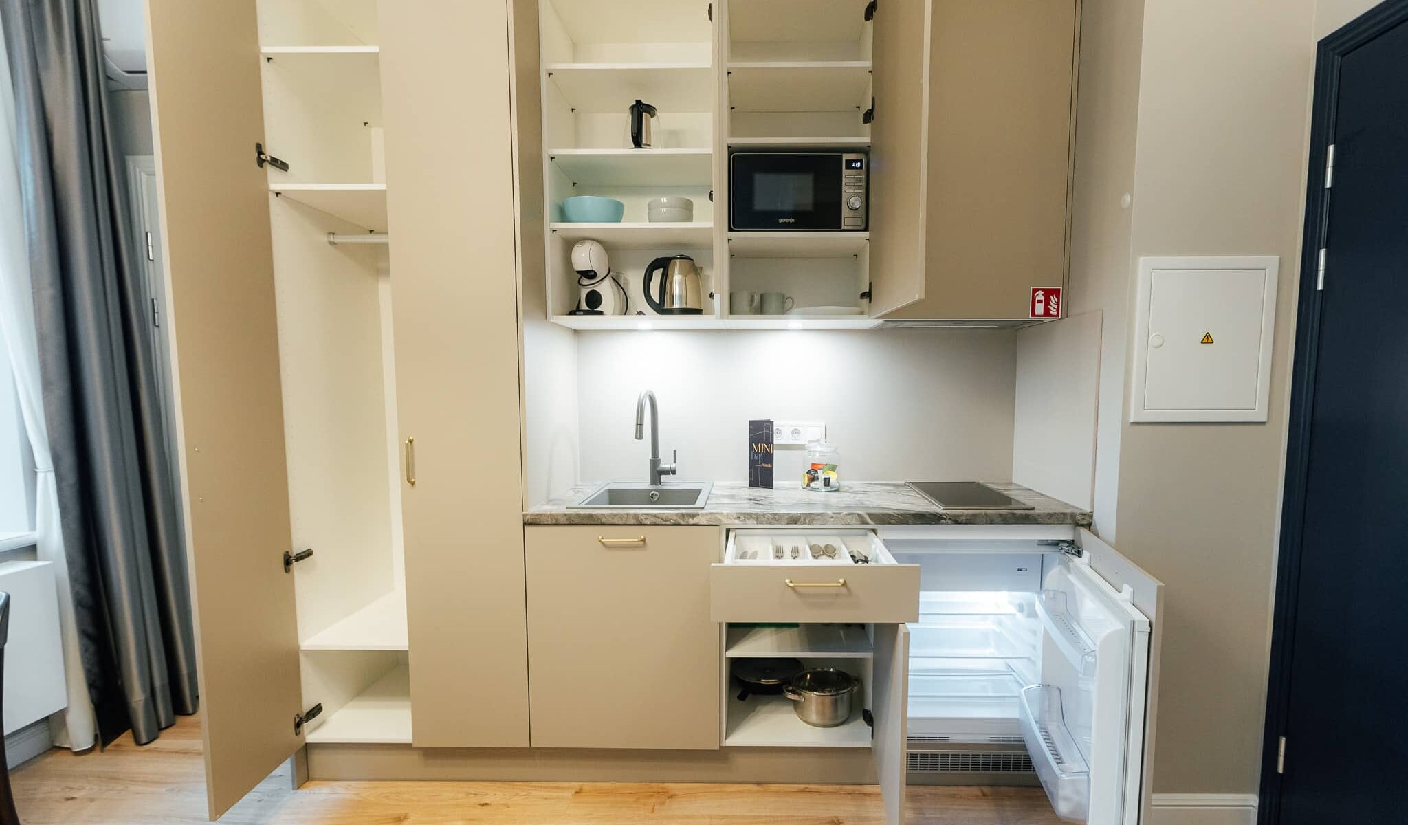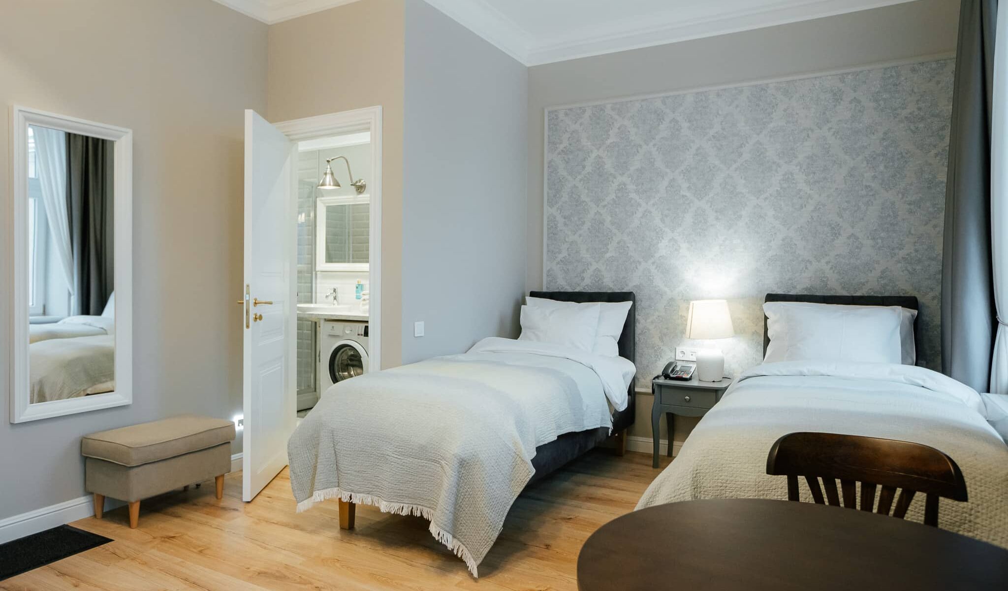 - Please note that hotel services include several benefits, such as bed linen, cleaning products, drinking water, cosmetics, spices, ironing and laundry facilities. so the price offered by the hotel will definitely be higher than the standard apartment rental offer in Riga.